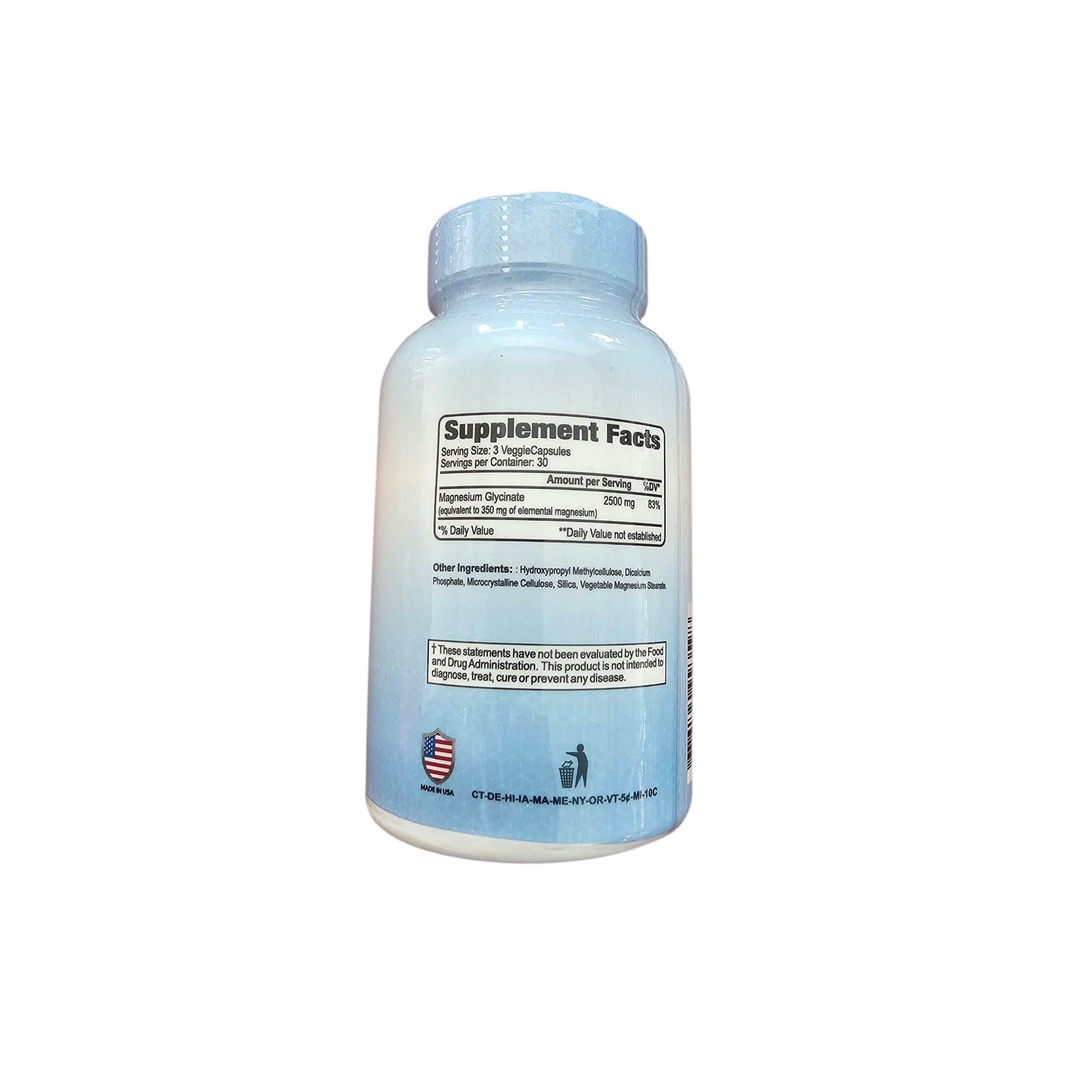 - 2500 mg high-absorption magnesium glycinate per serving (3 capsules)