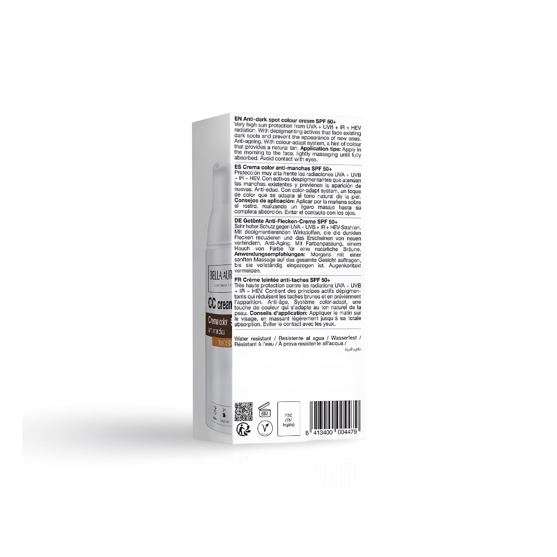 - Colour cream (Medium shade) that prevents the appearance of dark spots with a SPF 50+ sunscreen to protect from UVA, UVB and IR radiation. SPF50+ Protection from UVA + UVB + Infra-red (IR) + High-energy visible light (HEV).