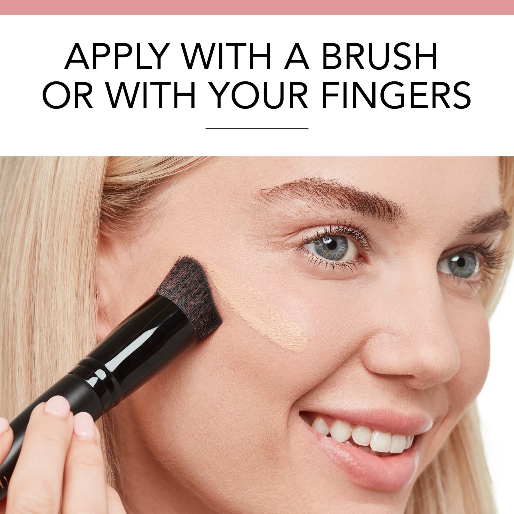 - Apply to face and blend with brush, sponge, or fingertips.