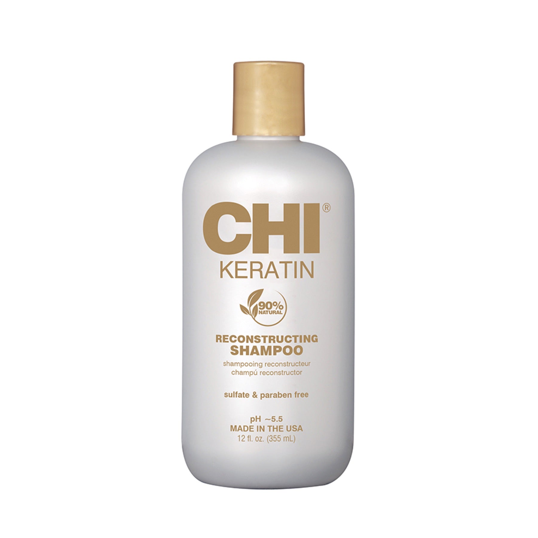 - CHI Keratin Reconstructing Shampoo 355ml – gently cleanses while repairing with keratin Contains Keratin Sulfate free Paraben free Safe for color-treated hair
