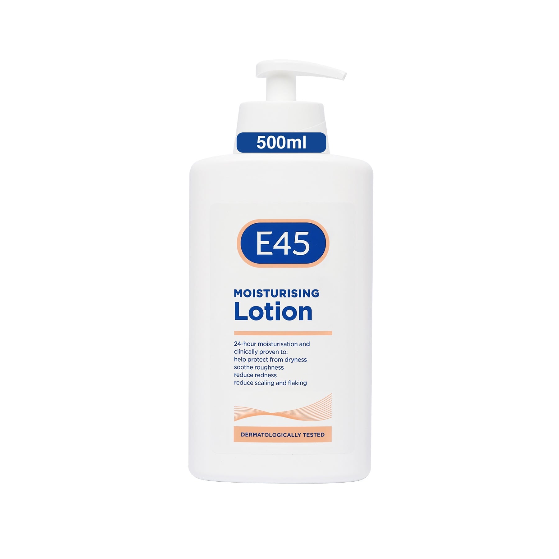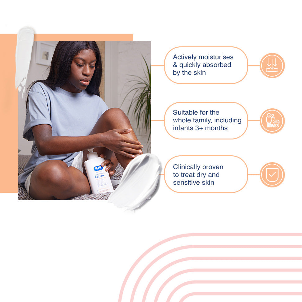 - E45 Moisturising Body Lotion 500ml delivers long-lasting moisture in a family-sized pack for daily use