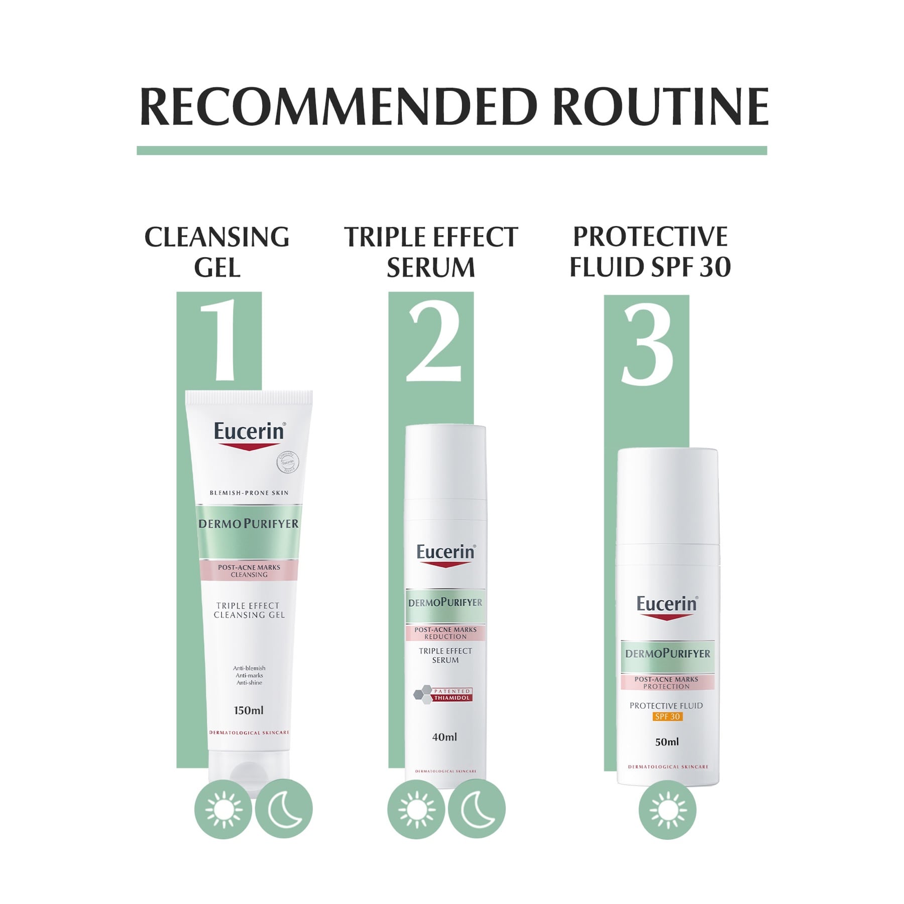 - Complete Routine for Impure Skin: Achieve Complete Care for Impure Skin With Eucerin’s Full Dermopurifyer Range – 1) Cleansing Gel, 2) Triple Effect Serum, 3) Protective Fluid Spf30, 4) Adjunctive Soothing Cream, and More.