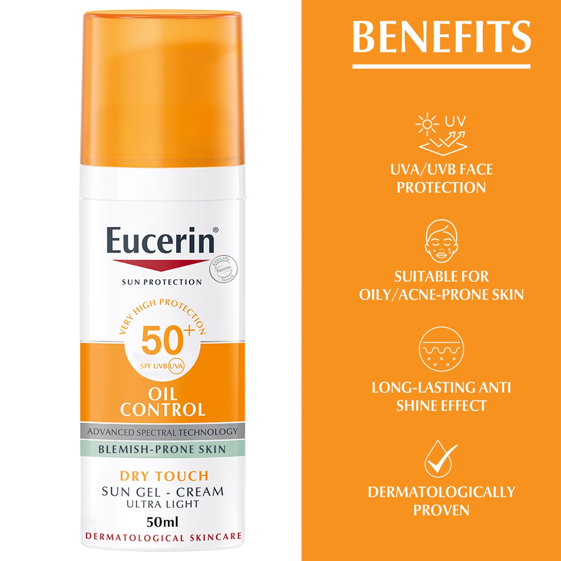 - EUCERIN Sun Gel-Cream Oil Control SPF 5+ is an everyday facial sunscreen for oily and acne-prone skin