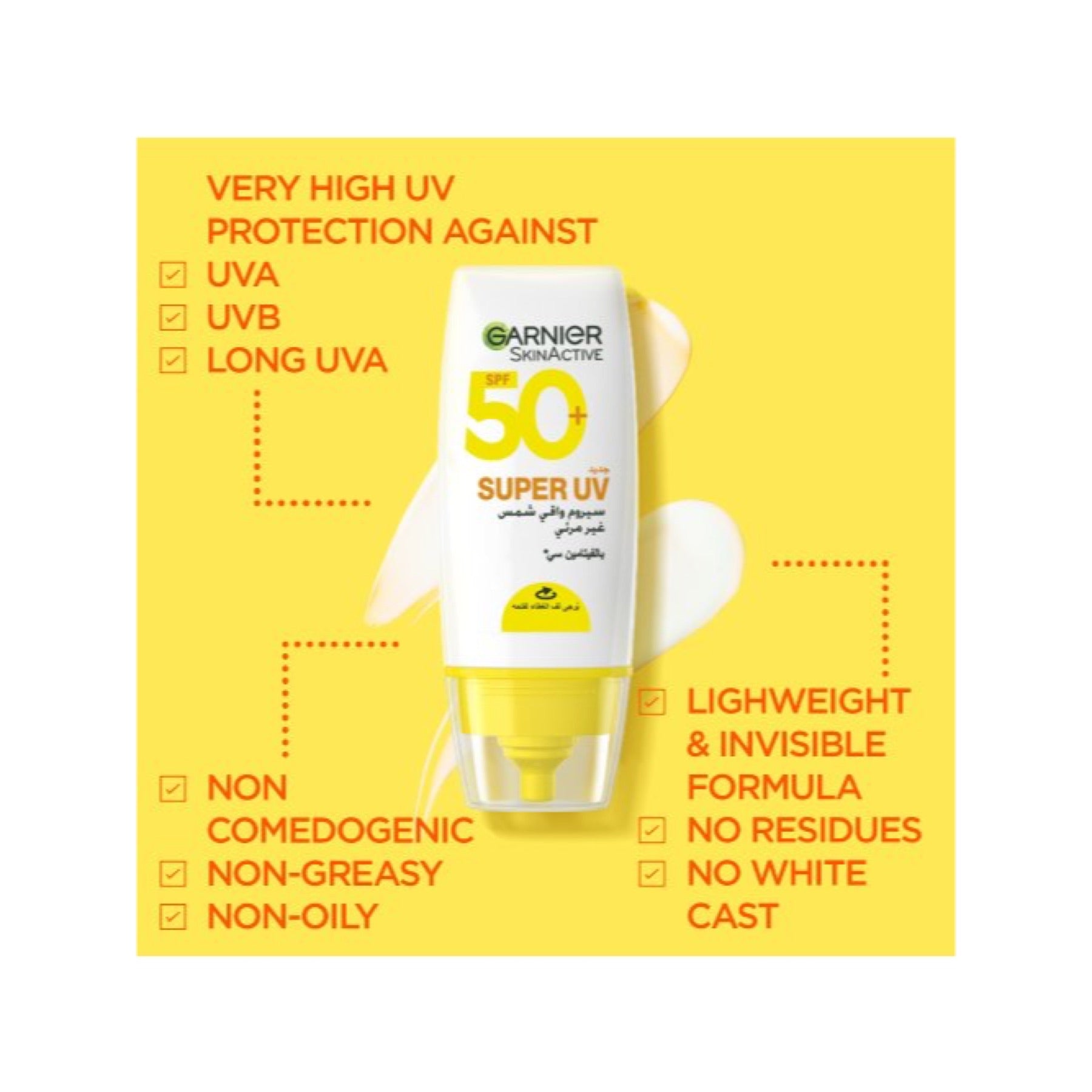 • Garnier Skin Active Super UV, Discover the NEW Super UV Invisible Serum Sunscreen by Garnier. With SPF 50+ and PA++++, it offers a very high UV protection against: UVA, UVB and long UVA.
