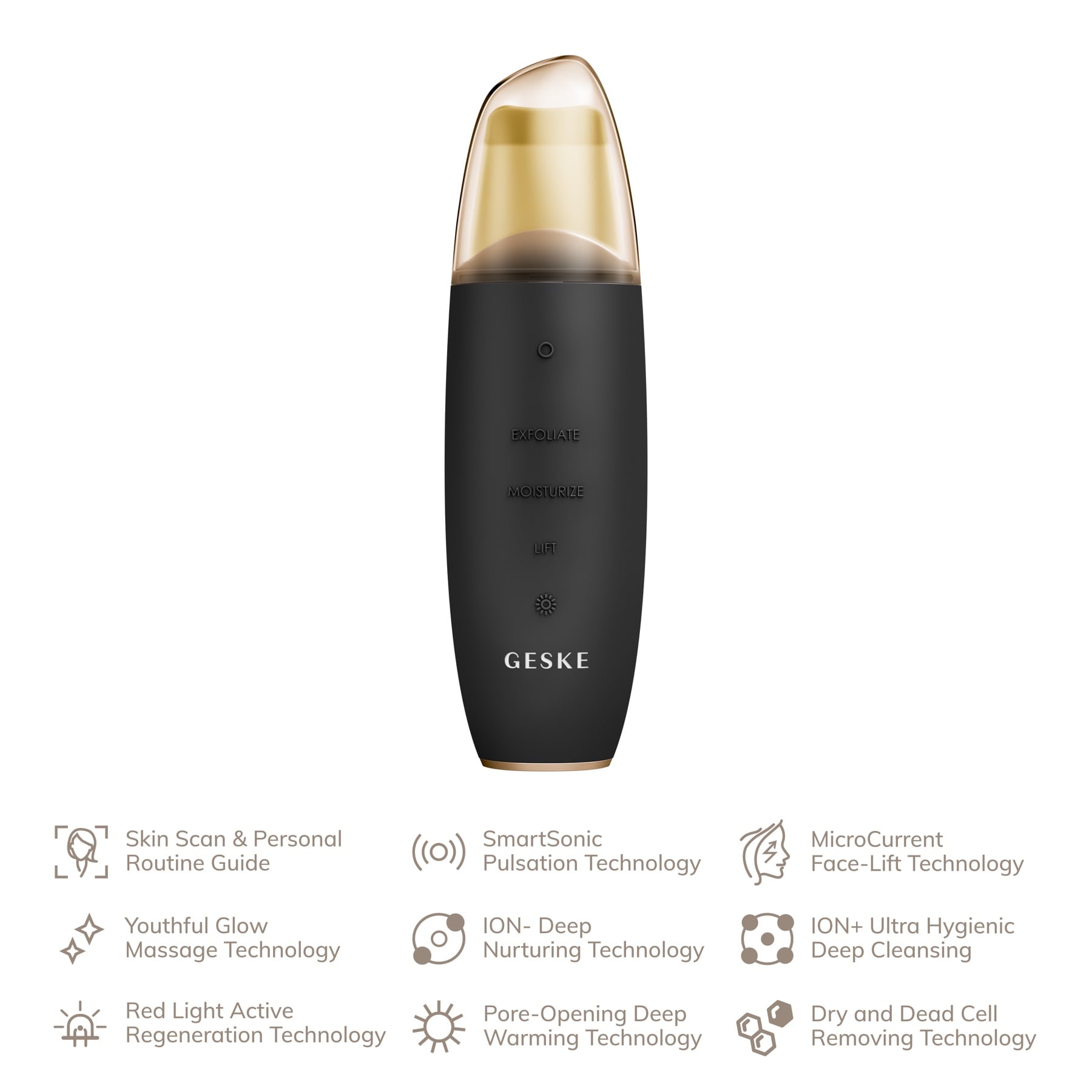 - Geske Microcurrent Skin Scrubber 9-in-1 removes blackheads and firms facial contours with MicroCurrent and SmartSonic Pulsation