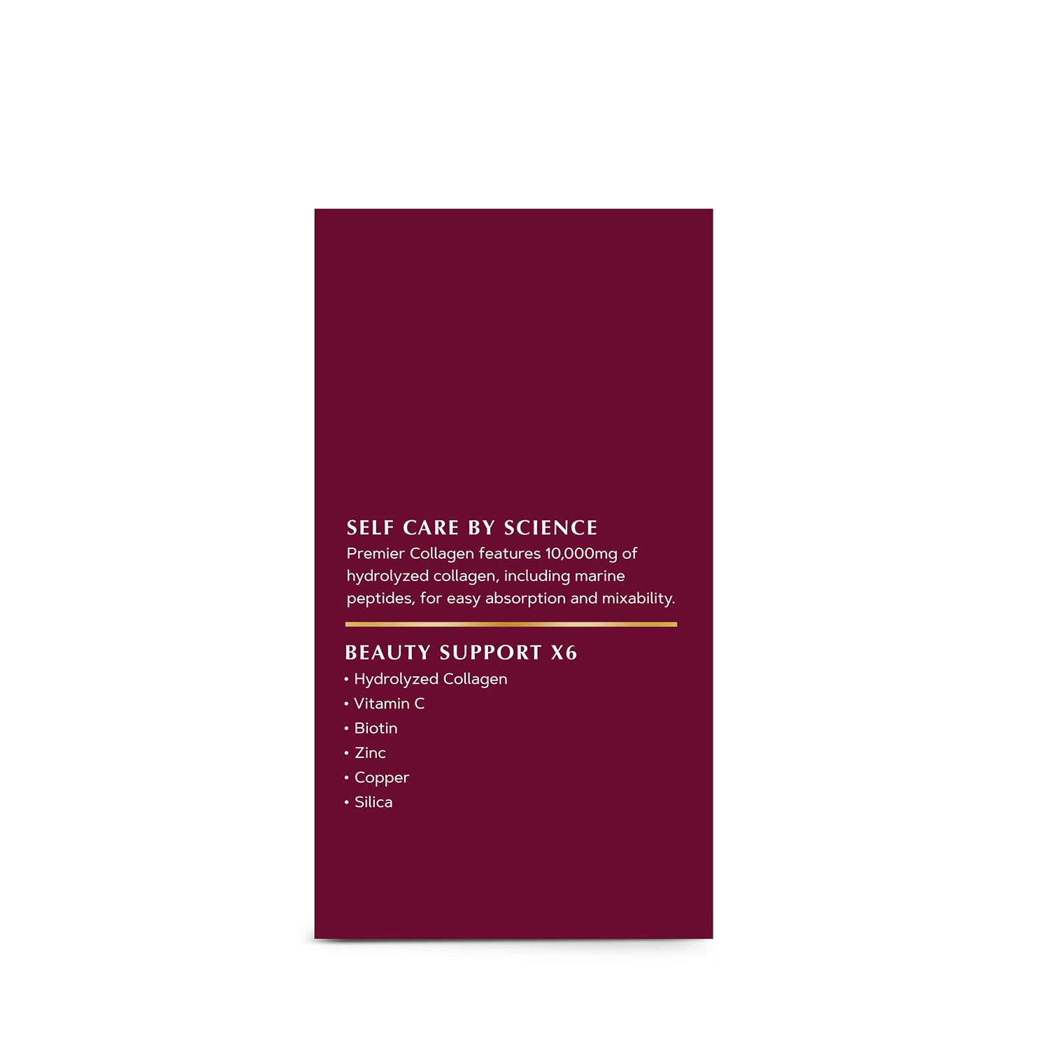 - GNC Premier Collagen Powder Box 20 Sticks supports skin, hair, and nail health with 10,000 mg of hydrolysed collagen sourced from bovine and marine origins.