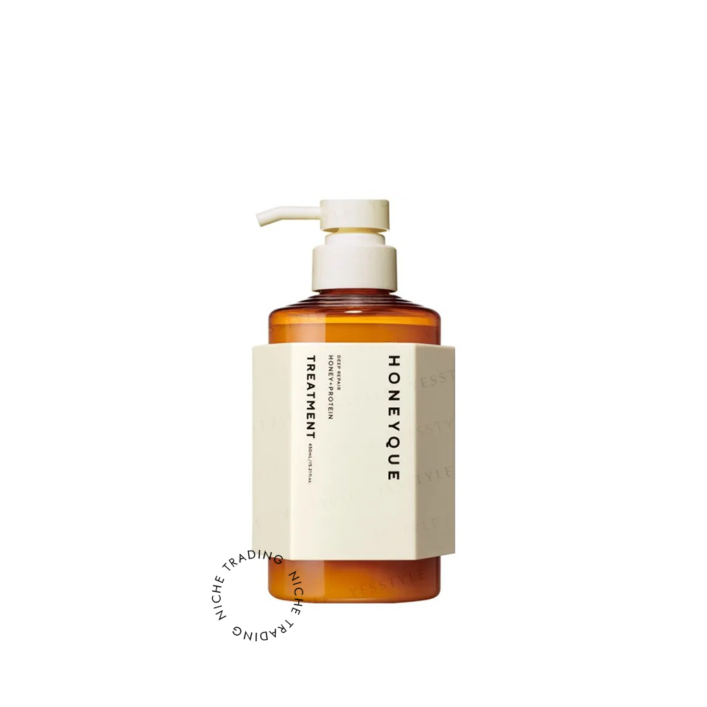- Restore smoothness from root to tip with Honeyque Tea Repair Hair Treatment Moist, powered by a honey protein formula that deeply hydrates and strengthens. Infused with organic Manuka honey and a blend of milk, soy, and royal jelly proteins, this intensive treatment penetrates the hair shaft to repair damage, rebalance moisture, and improve manageability. It helps reduce dryness, frizz, and unwanted waves, leaving hair silky, soft, and easy to style. Finished with a refreshing Aqua Blossom Honey scent.
