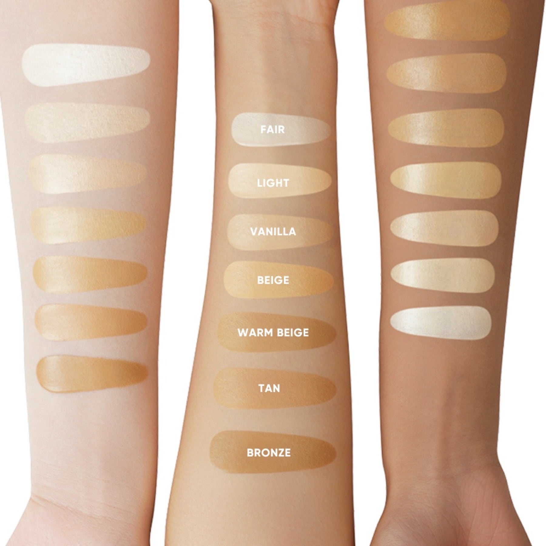 [00] Aqua, Ci 77891, Ethylhexyl Methoxycinnamate, Cyclopentasiloxane, Ethylhexyl Salicylate, C12-15 Alkyl Benzoate, Cetyl Peg/ppg-10/1 Dimethicone, Phenyl Trimethicone, Hydroxyethyl Urea, Bis-ethylhexyloxyphenol Methoxyphenyl Triazine, Isononyl Isononanoate, Silica, Dimethicone, Quaternium-18 Hectorite, Lauryl Peg-9 Polydimethylsiloxyethyl Dimethicone, Butylene Glycol, Magnesium Sulfate, Zinc Oxide, Polyglyceryl-2 Triisostearate, Sorbitan Sesquioleate, Hydroxyacetophenone, Ci 77492, Aluminum Hydroxide, Triethoxycaprylylsilane, Propylene Carbonate, 1,2-hexanediol, Dimethicone/vinyl Dimethicone Crosspolymer, Silica Dimethyl Silylate, Caprylyl Glycol, Menthone Glycerin Acetal, Ci 77491, Ethylhexylglycerin, Fragrance, Ci 77499, Dipropylene Glycol, Methicone, Ethyl Menthane Carboxamide, Stearyl Glycyrrhetinate, Methyl Diisopropyl Propionamide, Centella Asiatica Extract, Polygonum Cuspidatum Root Extract, Scutellaria Baicalensis Root Extract, Camellia Sinensis Leaf Extract, Glycyrrhiza Glabra (Licorice) Root Extract, Chamomilla Recutita (Matricaria) Flower Extract, Rosmarinus Officinalis (Rosemary) Leaf Extract. [01] Aqua, Ci 77891, Ethylhexyl Methoxycinnamate, Cyclopentasiloxane, Ethylhexyl Salicylate, C12-15 Alkyl Benzoate, Cetyl Peg/ppg-10/1 Dimethicone, Phenyl Trimethicone, Hydroxyethyl Urea, Bis-ethylhexyloxyphenol Methoxyphenyl Triazine, Isononyl Isononanoate, Silica, Dimethicone, Ci 77492, Quaternium-18 Hectorite, Lauryl Peg-9 Polydimethylsiloxyethyl Dimethicone, Butylene Glycol, Magnesium Sulfate, Zinc Oxide, Polyglyceryl-2 Triisostearate, Sorbitan Sesquioleate, Hydroxyacetophenone, Aluminum Hydroxide, Triethoxycaprylylsilane, Propylene Carbonate, 1,2-hexanediol, Dimethicone/vinyl Dimethicone Crosspolymer, Silica Dimethyl Silylate, Caprylyl Glycol, Ci 77491, Menthone Glycerin Acetal, Ethylhexylglycerin, Fragrance, Ci 77499, Dipropylene Glycol, Methicone, Ethyl Menthane Carboxamide, Stearyl Glycyrrhetinate, Methyl Diisopropyl Propionamide, Centella Asiatica Extract, Polygonum Cuspidatum Root Extract, Scutellaria Baicalensis Root Extract, Camellia Sinensis Leaf Extract, Glycyrrhiza Glabra (Licorice) Root Extract, Chamomilla Recutita (Matricaria) Flower Extract, Rosmarinus Officinalis (Rosemary) Leaf Extract. [02] Aqua, Ci 77891, Ethylhexyl Methoxycinnamate, Cyclopentasiloxane, Ethylhexyl Salicylate, C12-15 Alkyl Benzoate, Cetyl Peg/ppg-10/1 Dimethicone, Phenyl Trimethicone, Hydroxyethyl Urea, Bis-ethylhexyloxyphenol Methoxyphenyl Triazine, Ci 77492, Isononyl Isononanoate, Silica, Dimethicone, Quaternium-18 Hectorite, Lauryl Peg-9 Polydimethylsiloxyethyl Dimethicone, Butylene Glycol, Magnesium Sulfate, Zinc Oxide, Polyglyceryl-2 Triisostearate, Sorbitan Sesquioleate, Hydroxyacetophenone, Triethoxycaprylylsilane, Aluminum Hydroxide, Propylene Carbonate, 1,2-hexanediol, Ci 77491, Dimethicone/vinyl Dimethicone Crosspolymer, Silica Dimethyl Silylate, Caprylyl Glycol, Menthone Glycerin Acetal, Ethylhexylglycerin, Fragrance, Ci 77499, Dipropylene Glycol, Methicone, Ethyl Menthane Carboxamide, Stearyl Glycyrrhetinate, Methyl Diisopropyl Propionamide, Centella Asiatica Extract, Polygonum Cuspidatum Root Extract, Scutellaria Baicalensis Root Extract, Camellia Sinensis Leaf Extract, Glycyrrhiza Glabra (Licorice) Root Extract, Chamomilla Recutita (Matricaria) Flower Extract, Rosmarinus Officinalis (Rosemary) Leaf Extract. [03] Aqua, Ci 77891, Ethylhexyl Methoxycinnamate, Cyclopentasiloxane, Ethylhexyl Salicylate, C12-15 Alkyl Benzoate, Ci 77492, Cetyl Peg/ppg-10/1 Dimethicone, Phenyl Trimethicone, Hydroxyethyl Urea, Bis-ethylhexyloxyphenol Methoxyphenyl Triazine, Isononyl Isononanoate, Silica, Dimethicone, Quaternium-18 Hectorite, Lauryl Peg-9 Polydimethylsiloxyethyl Dimethicone, Butylene Glycol, Magnesium Sulfate, Zinc Oxide, Polyglyceryl-2 Triisostearate, Sorbitan Sesquioleate, Hydroxyacetophenone, Triethoxycaprylylsilane, Propylene Carbonate, 1,2-hexanediol, Aluminum Hydroxide, Ci 77491, Dimethicone/vinyl Dimethicone Crosspolymer, Silica Dimethyl Silylate, Caprylyl Glycol, Menthone Glycerin Acetal, Ci 77499, Ethylhexylglycerin, Fragrance, Dipropylene Glycol, Methicone, Ethyl Menthane Carboxamide, Stearyl Glycyrrhetinate, Methyl Diisopropyl Propionamide, Centella Asiatica Extract, Polygonum Cuspidatum Root Extract, Scutellaria Baicalensis Root Extract, Camellia Sinensis Leaf Extract, Glycyrrhiza Glabra (Licorice) Root Extract, Chamomilla Recutita (Matricaria) Flower Extract, Rosmarinus Officinalis (Rosemary) Leaf Extract. [04] Aqua, Ci 77891, Ethylhexyl Methoxycinnamate, Cyclopentasiloxane, Ci 77492, Ethylhexyl Salicylate, C12-15 Alkyl Benzoate, Cetyl Peg/ppg-10/1 Dimethicone, Phenyl Trimethicone, Hydroxyethyl Urea, Bis-ethylhexyloxyphenol Methoxyphenyl Triazine, Isononyl Isononanoate, Silica, Dimethicone, Quaternium-18 Hectorite, Lauryl Peg-9 Polydimethylsiloxyethyl Dimethicone, Butylene Glycol, Magnesium Sulfate, Zinc Oxide, Polyglyceryl-2 Triisostearate, Ci 77491, Sorbitan Sesquioleate, Hydroxyacetophenone, Triethoxycaprylylsilane, Propylene Carbonate, 1,2-hexanediol, Aluminum Hydroxide, Dimethicone/vinyl Dimethicone Crosspolymer, Silica Dimethyl Silylate, Caprylyl Glycol, Ci 77499, Menthone Glycerin Acetal, Ethylhexylglycerin, Fragrance, Dipropylene Glycol, Methicone, Ethyl Menthane Carboxamide, Stearyl Glycyrrhetinate, Methyl Diisopropyl Propionamide, Centella Asiatica Extract, Polygonum Cuspidatum Root Extract, Scutellaria Baicalensis Root Extract, Camellia Sinensis Leaf Extract, Glycyrrhiza Glabra (Licorice) Root Extract, Chamomilla Recutita (Matricaria) Flower Extract, Rosmarinus Officinalis (Rosemary) Leaf Extract. [05] Aqua, Ci 77891, Ethylhexyl Methoxycinnamate, Cyclopentasiloxane, Ci 77492, Ethylhexyl Salicylate, C12-15 Alkyl Benzoate, Cetyl Peg/ppg-10/1 Dimethicone, Phenyl Trimethicone, Hydroxyethyl Urea, Bis-ethylhexyloxyphenol Methoxyphenyl Triazine, Isononyl Isononanoate, Silica, Dimethicone, Quaternium-18 Hectorite, Lauryl Peg-9 Polydimethylsiloxyethyl Dimethicone, Butylene Glycol