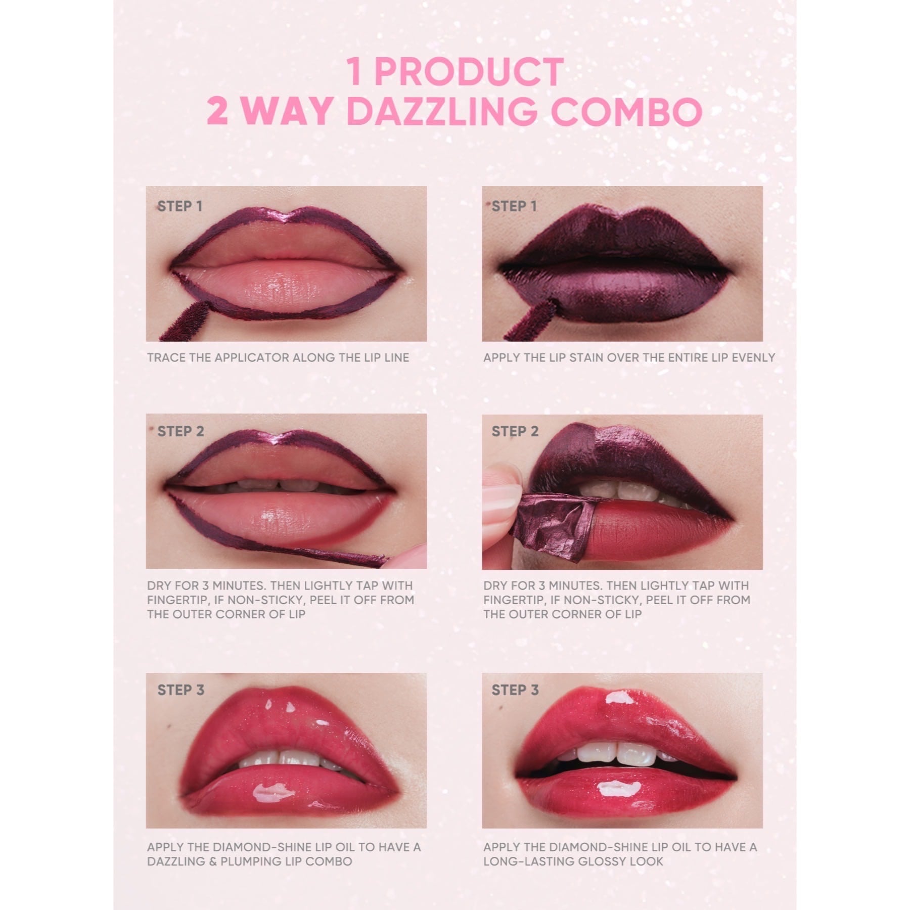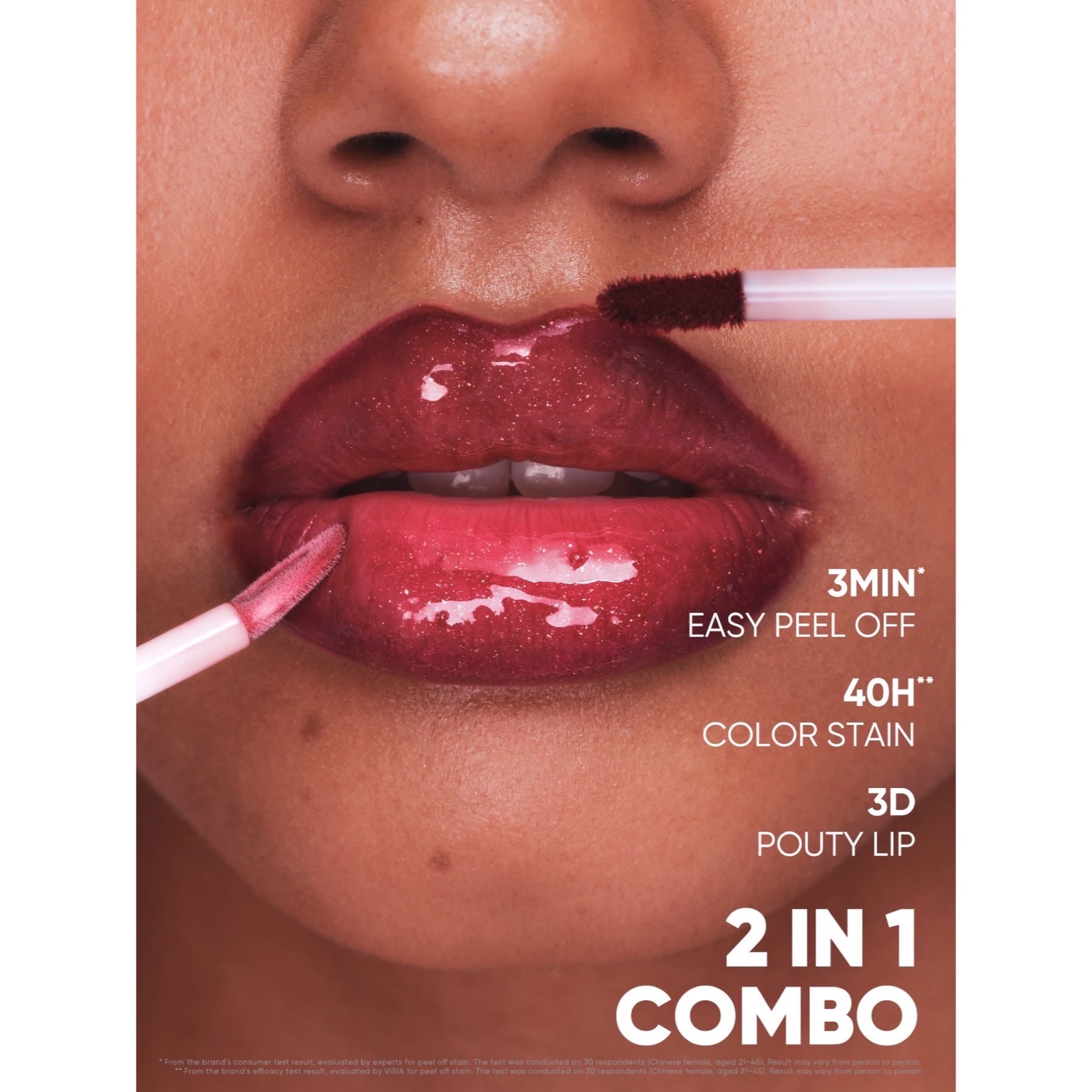 - Apply the product to clean, dry lips, let it dry completely, and then slowly peel it off to reveal the color. After peeling, you can apply the gloss.