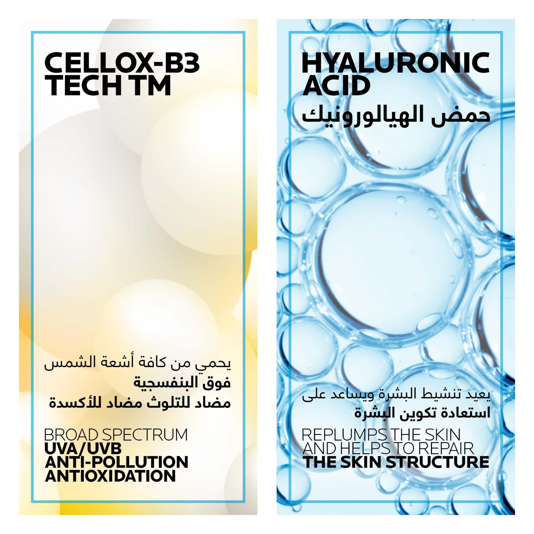 - Hybrid sunscreen with sun protection & antiaging properties. With celloX B3 technology, Niacinamide & Hylauronic acid. High protection with broad spectrum protection UVB/UVA. Antioxidant, to protect from oxidative stress induced by pollution & infrared-A. Rich in Mineral pigments.