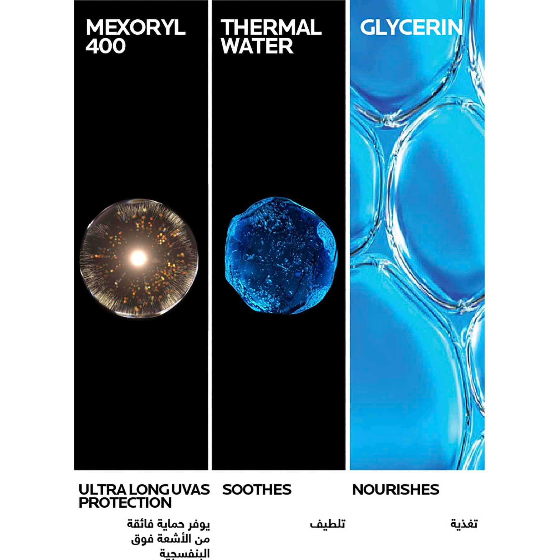 - La Roche Posay Anthelios Tinted Fluid SPF50+ / With MEXORYL400, the only UV filter against the most insidious UV rays: ULTRA LONG UVA*. Ultimate protection (UVB + UVA + ULTRA LONG UVA) against deep cell damage. Broad-spectrum protection prevents damage caused by UVA, UVB, Infrared-A, and pollution. Ultra-resistant to water, sweat, and sand. Anti-eye stinging. Lightweight, non-sticky texture. Suitable for all skin types