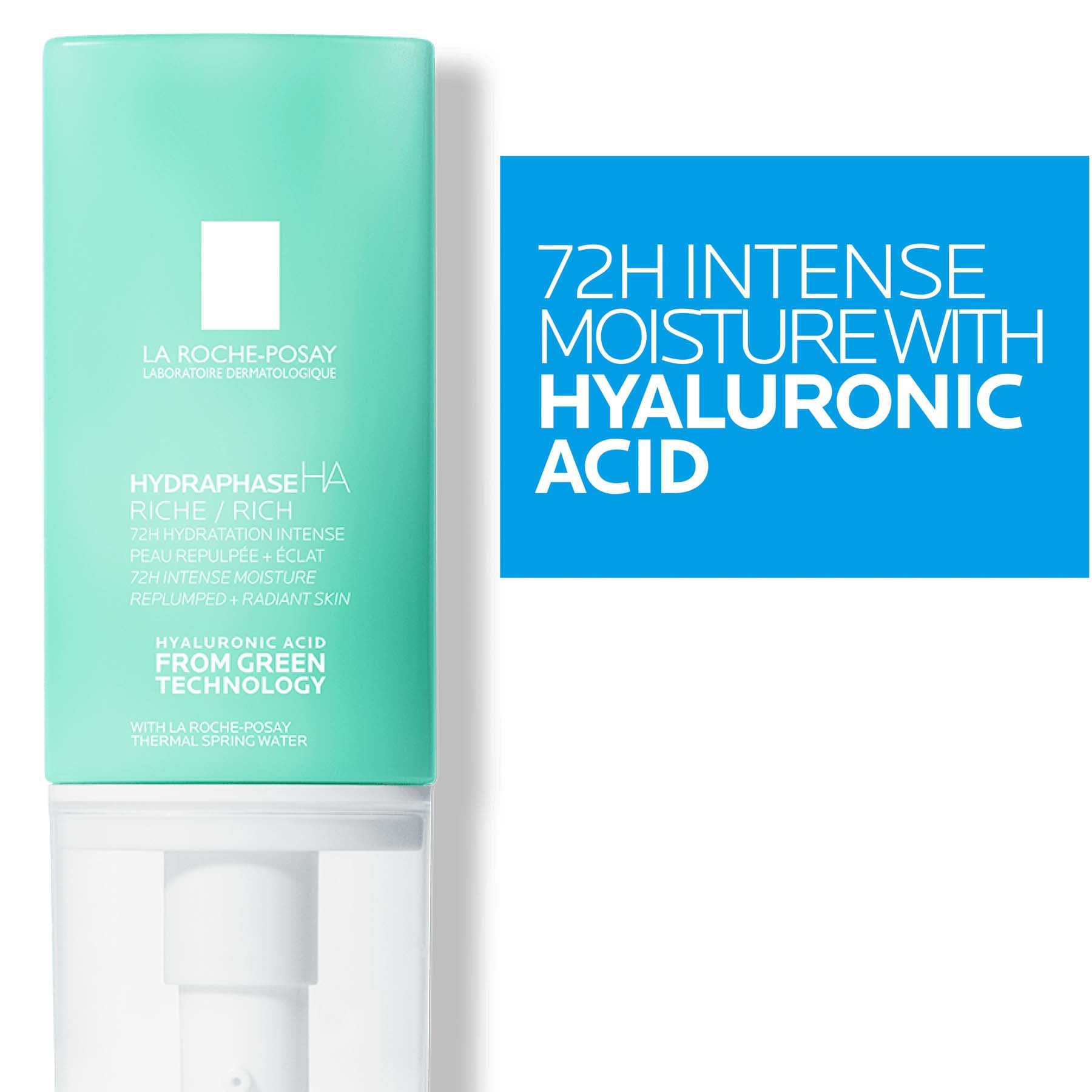 - La Roche Posay Hydraphase HA Rich Powered by Green Technology. It moisturizes your skin for 72h. Rich and creamy texture. Skin is instantly radiant and plumped. The formula is a unique association of La Roche Posay thermal spring water known for its natural soothing properties and Pure Hyaluronic Acid from Green Technology: biofermentation process using plant sugars. Tolerance tested under dermatological control.