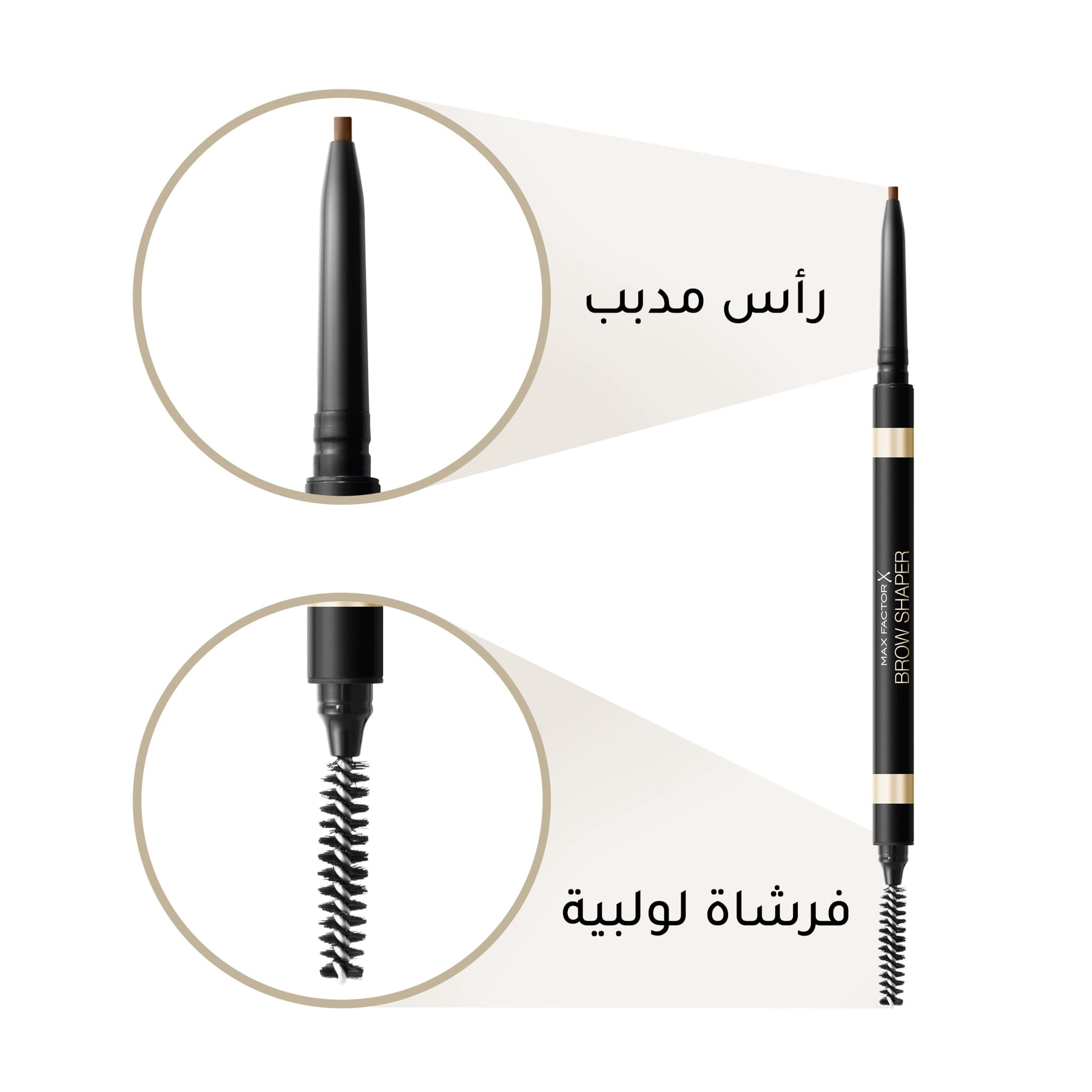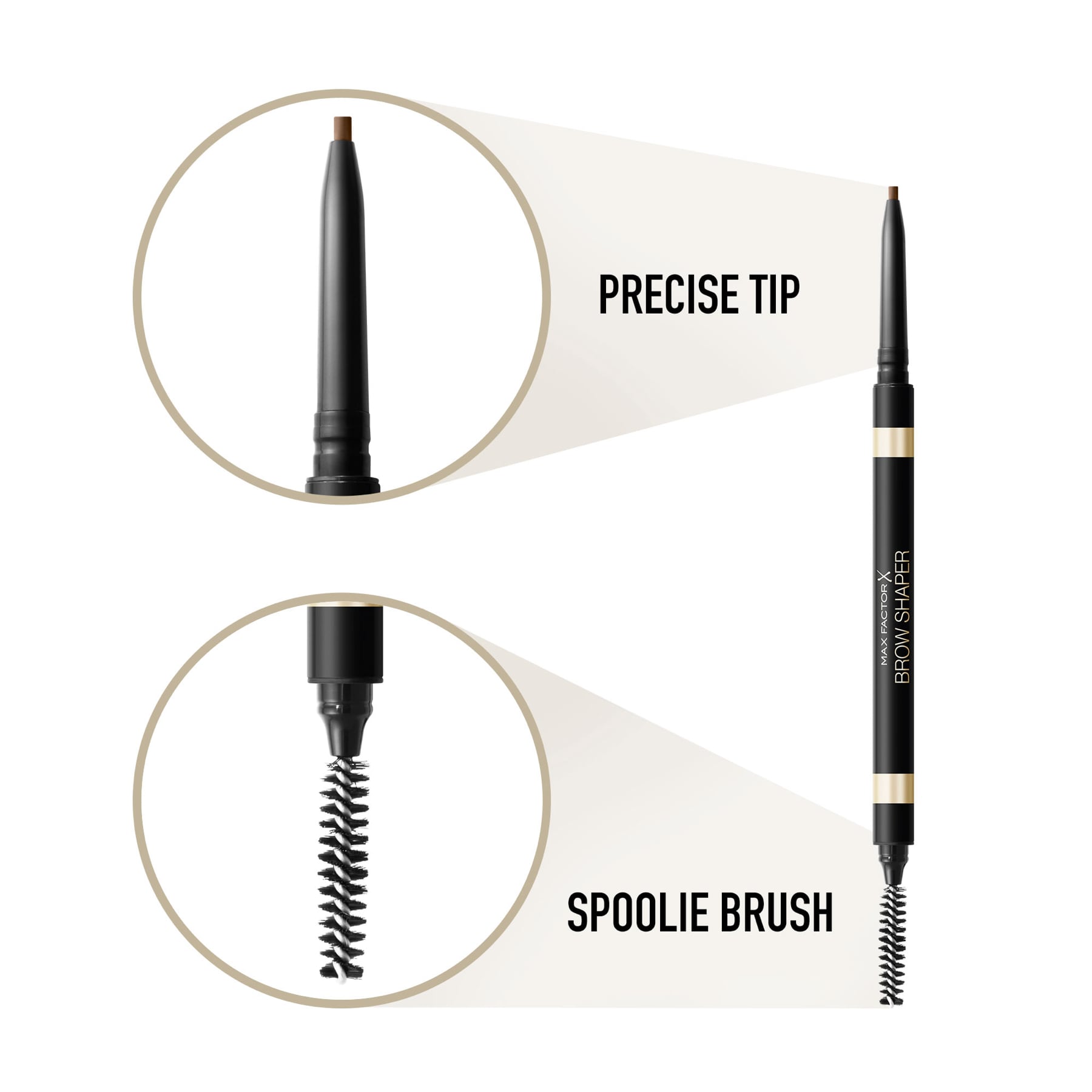 - Max Factor Brow Shaper Eye Brow Pencil 1g is a multi-tasking pencil that also comes with a spoolie brush. The beautiful brown shade fills in the brows to make it look fuller while the brush allows you to blend for a seamless look.