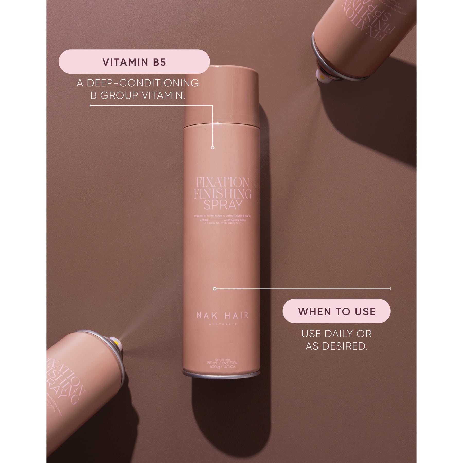 - Shake well before use. Hold 30cm away from hair and spray evenly. Style as desired.