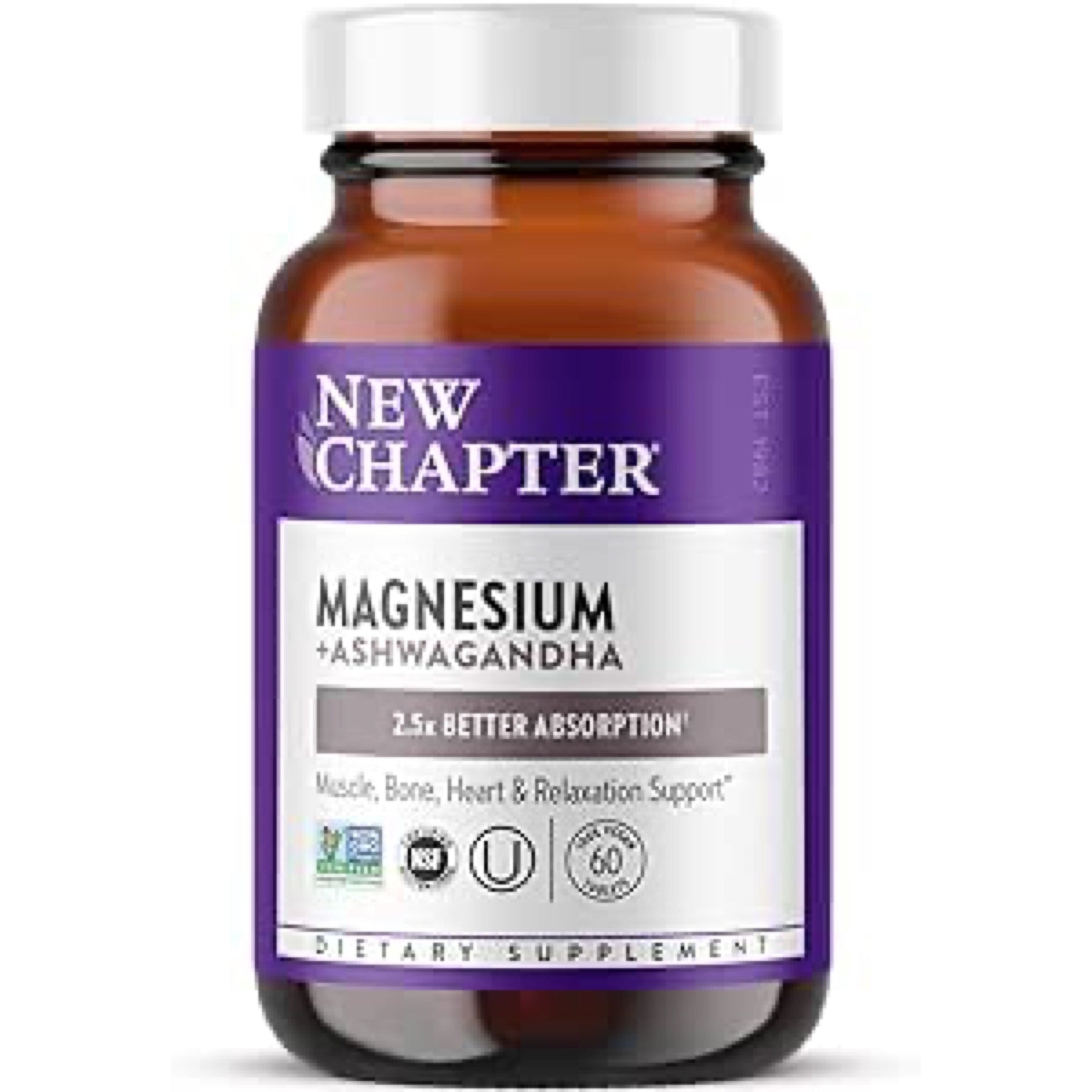 - New Chapter Magnesium + Ashwagandha 60 Tablets offers extended support for muscle and stress management