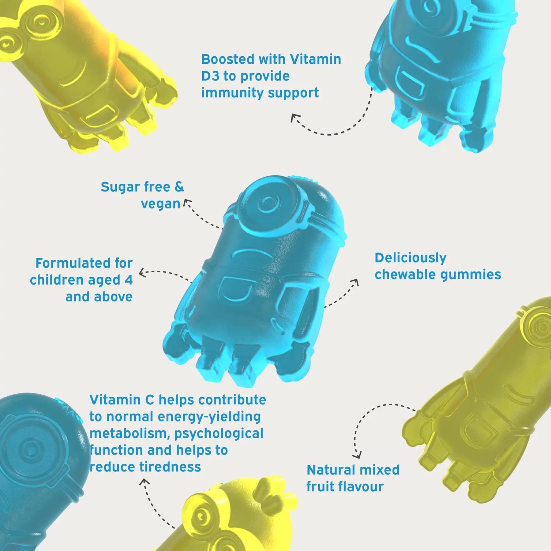 - Mixed Fruit Flavor & Chewable: With a delicious mixed fruit flavor, these chewable gummies make taking vitamins a treat for even the fussiest of eaters. Fun Minion shapes make every dose exciting for your kids.