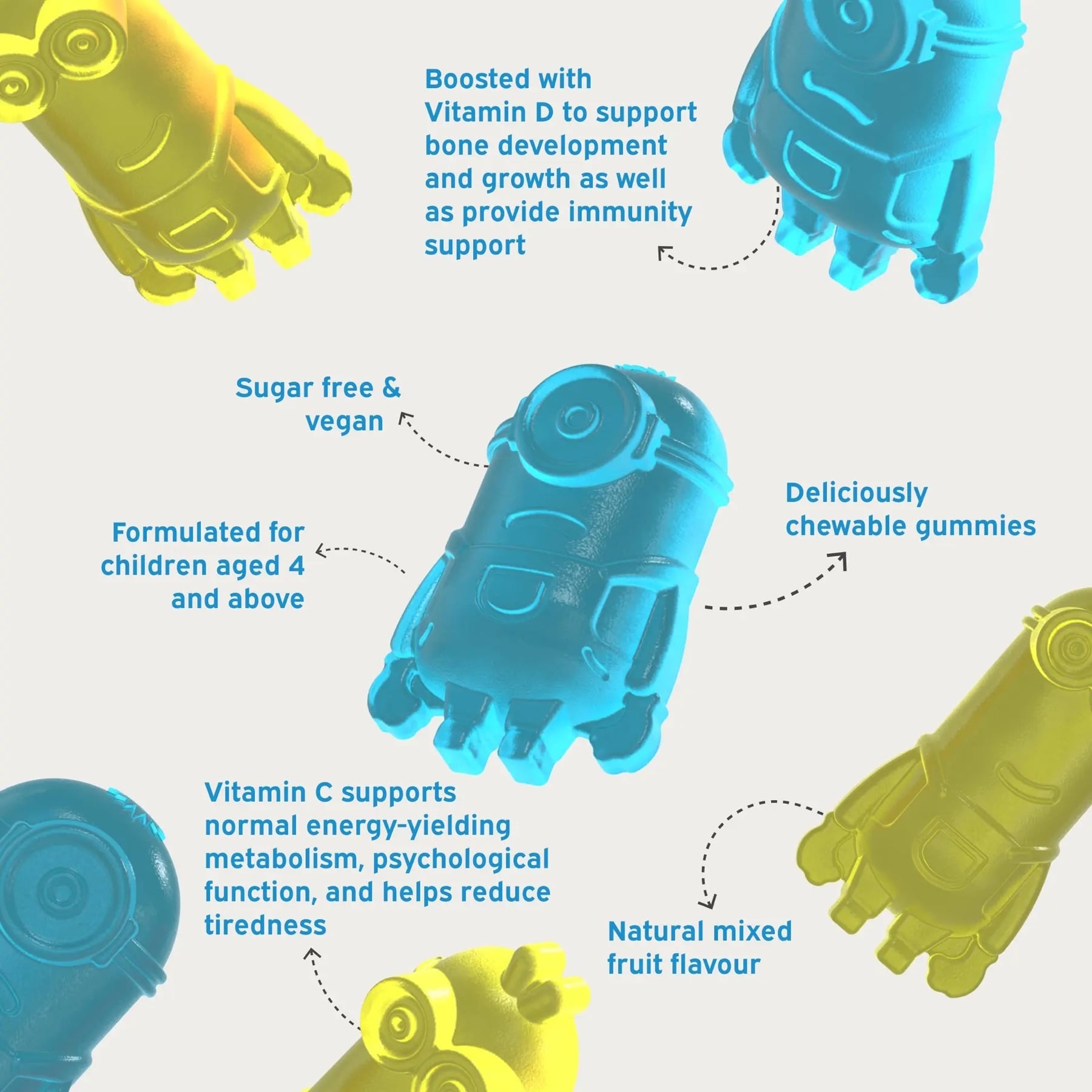 - Mixed Fruit Flavor & Chewable: With a delicious mixed fruit flavor, these chewable gummies make taking vitamins a treat for even the fussiest of eaters. Fun Minion shapes make every dose exciting for your kids.