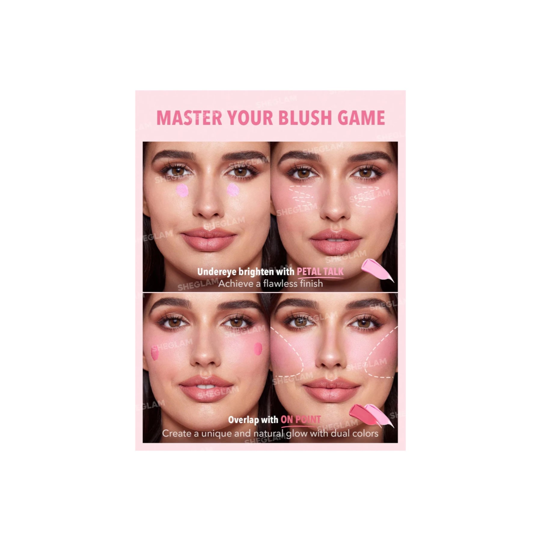 - Get flushed with Sheglam Color Bloom Liquid Blush Matte Finish, featuring nourishing ingredients and a long-wearing,lightweight gel-cream formula that loves your skin.A sponge tip applicator applies highly pigmented,matte color like a dream and leaves your cheeks pretty'n plump!