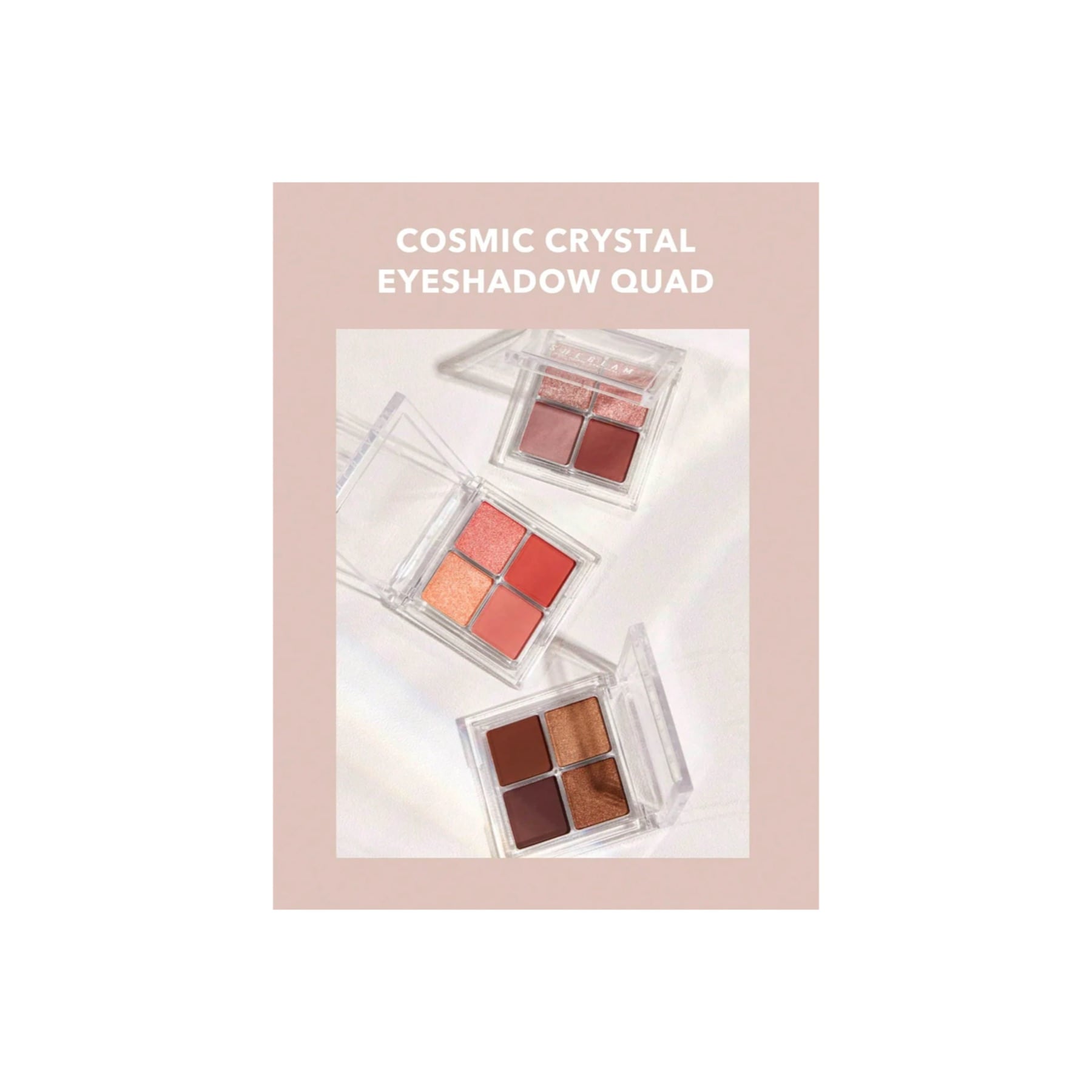 - You call it eyeshadow, we call it divine shine. Glow from the outside in with Sheglam Cosmic Crystal Eyeshadow Quad of next-level neutrals—in mattes and glitters—that work their magic from morning till night. Oh, and add long-lasting + highly-pigmented to its many supernatural gifts.
