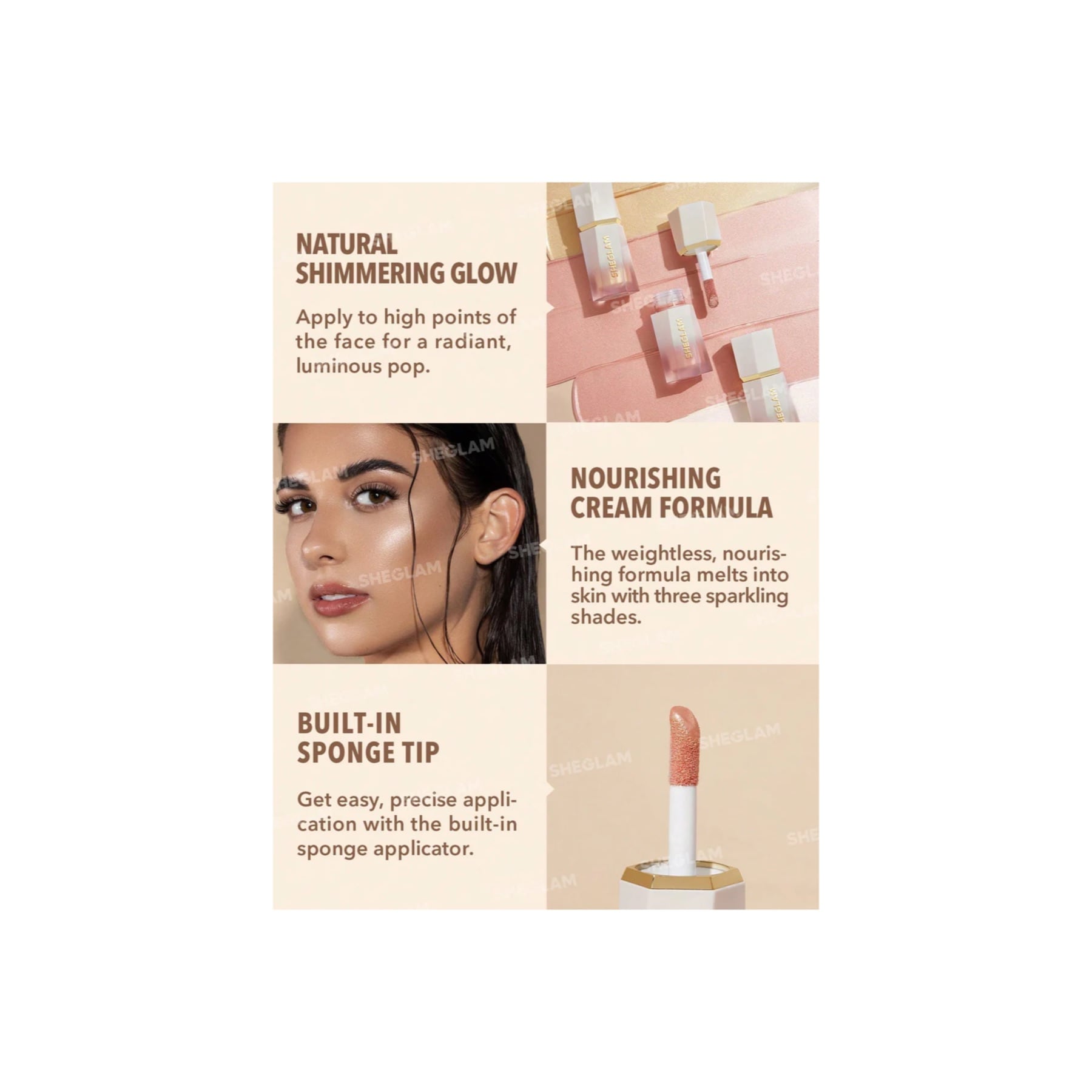 - Go, baby, glow! Sheglam Glow Bloom Liquid Highlighter will get you gleaming with it's dewy,buildable,long-wearing finish and light as air hydrating formula.