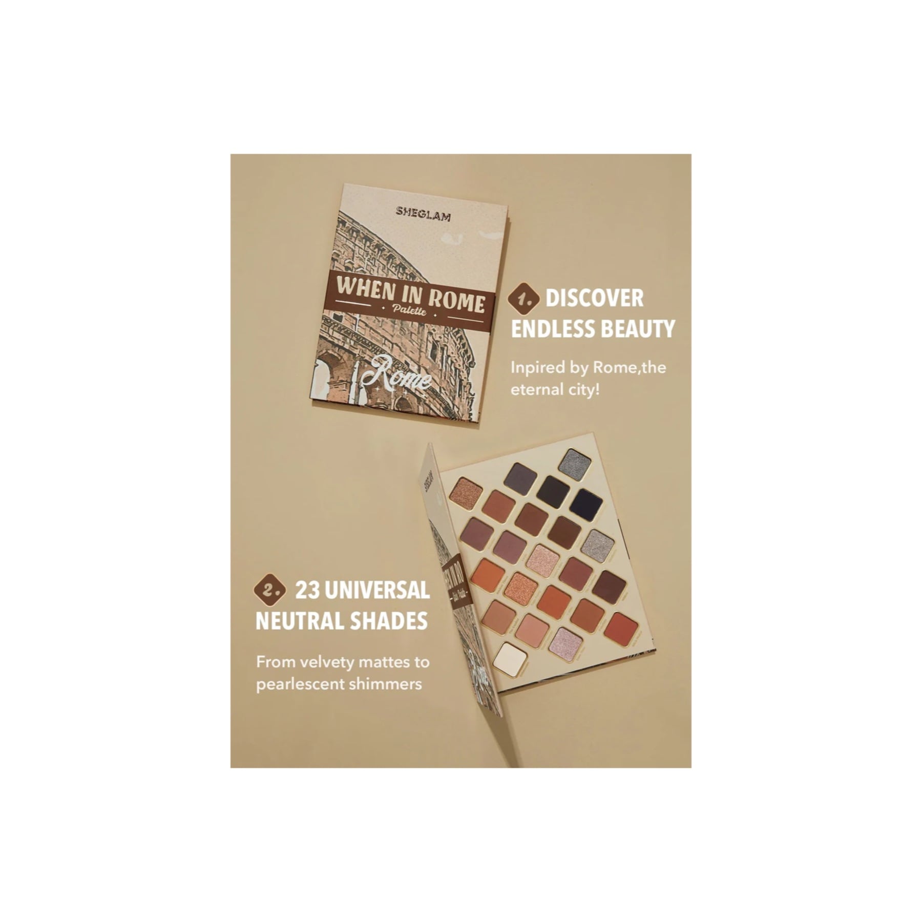 - Inspired by Rome's infinite beauty, this 23-pan palette means that the sky's the limit! Jam-packed with universal neutral shades, create a variety of makeup combinations! From velvety mattes and metallics to delicate pearlescent shimmers, each shade is perfect for everyday use. With Sheglam When In Rome Palette's amazing blendability and color payoff - you've found the new foundation to your makeup collection!