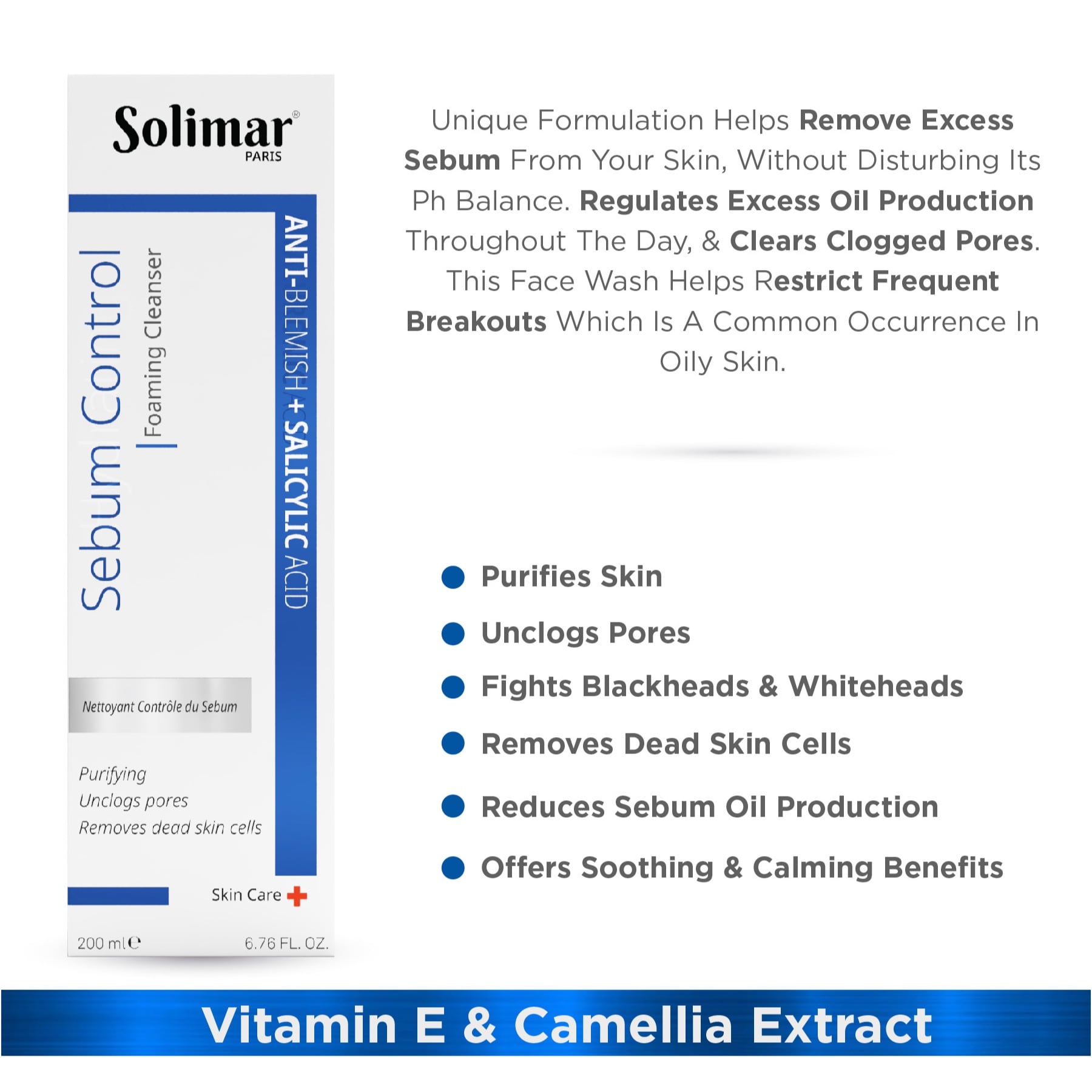 - The Sebum Control Foaming Cleansing is a specialized facial cleanser designed to combat acne-prone skin breakouts while regulating sebum production and clearing out pores. This gentle foaming formula effectively removes impurities, excess oil, and makeup, leaving your skin clean, refreshed, and free from blemishes.