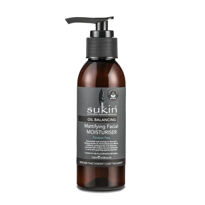 - Sukin Oil Balancing Mattifying Facial Moisturiser is enriched with Rice Powder to mattify the face, and prevents an oily base throughout the day! Pomegranate and Quince promote healthy, balanced skin, while a blend of Aloe Vera and Chamomile calms and soothes while providing light hydratio