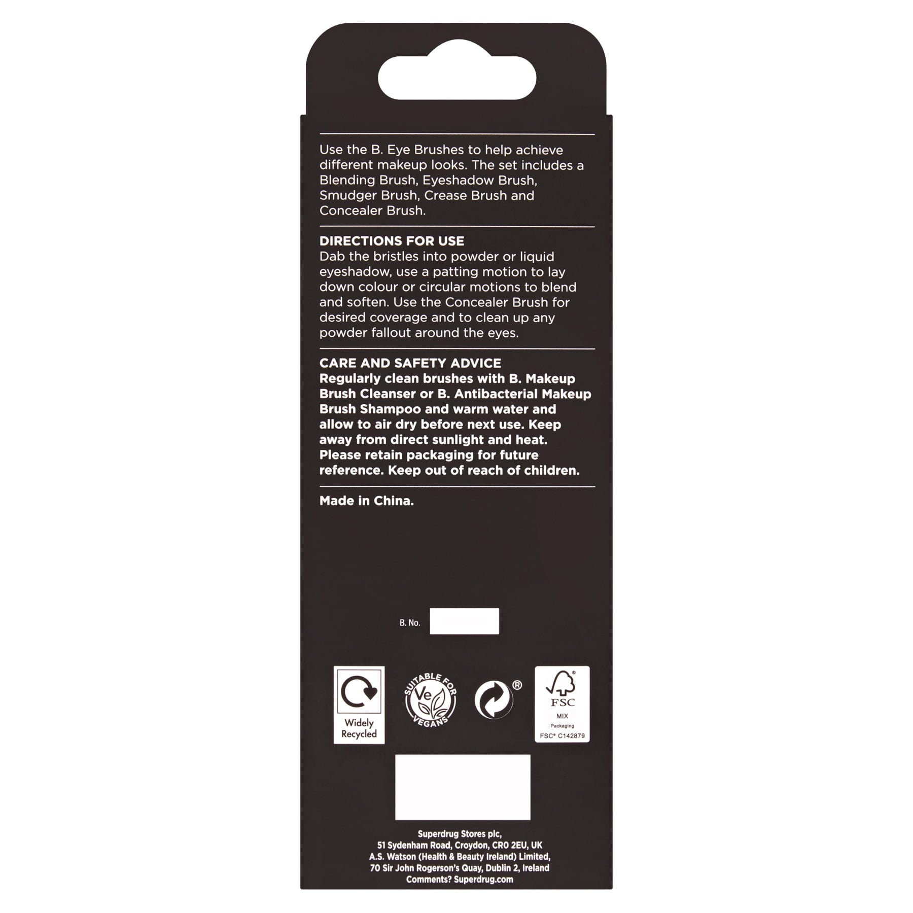 - Superdrug B. 5 Piece Eye Brush Set includes blending, eye shadow, smudger, crease and concealer brushes to help create and perfect any eye makeup look