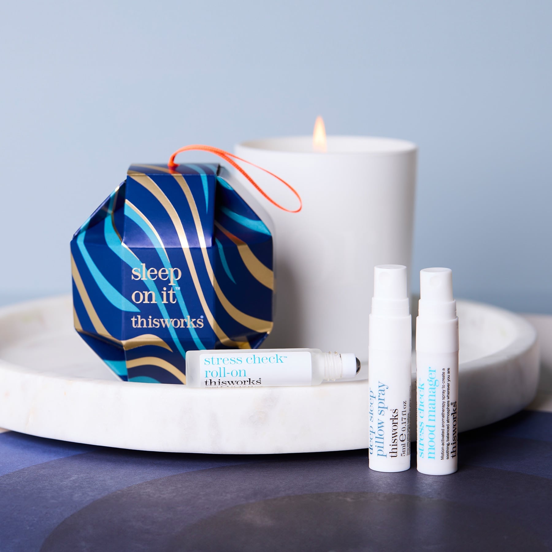 - Apply stress check roll-on over pulse points and deeply inhale the Superblend of Eucalyptus, Frankincense and Lavender to ease the mind. Let the functional fragrance of stress check mood manager gradually release as you go about your day. Fall asleep faster and enjoy a more restful sleep with This Works best-selling deep sleep pillow spray.