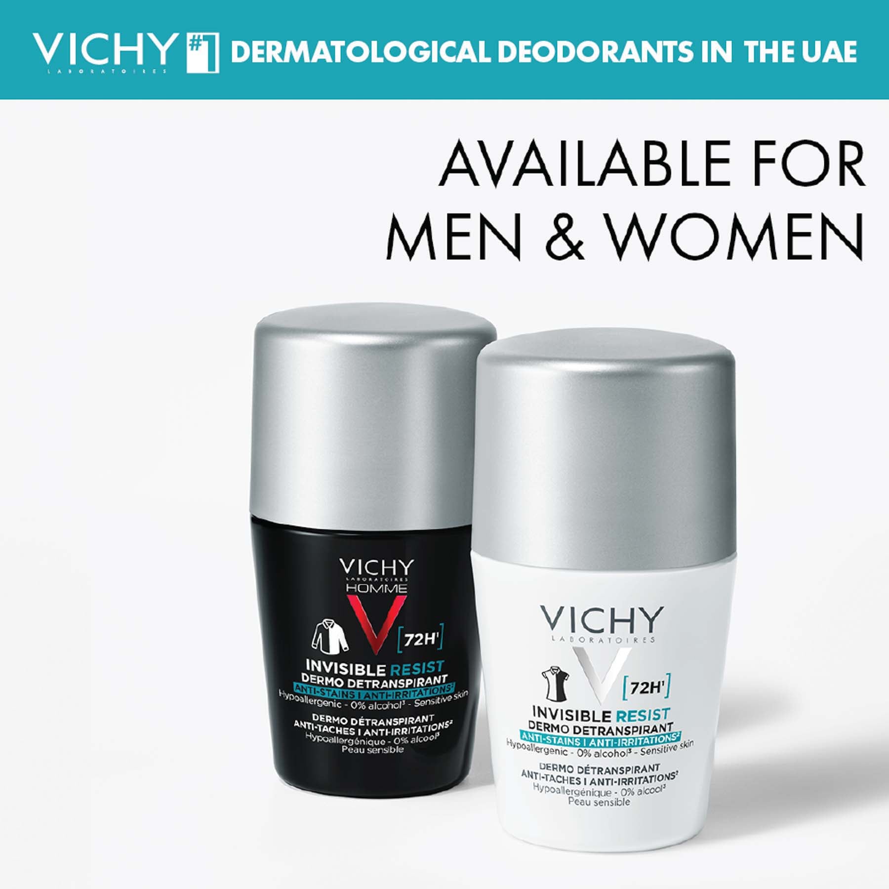 - Vichy DEO 72 Hour invisible resist. Provides life-proof- anti-sweat protection and strengthening the skin barrier.Anti-stains ,Anti-Humidity Tested under dermatological control. Hypoallergenic 0% aclohol Suitable for daily use event on sensitive skin.