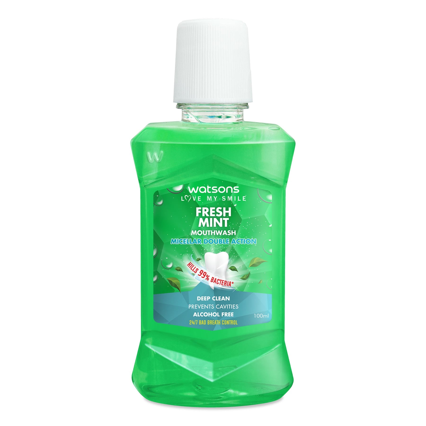 - Watsons Fresh Mint Mouthwash 100ml contains sodium fluoride to help prevent cavities. This alcohol-free formula is specially designed to work gently on gums. Its mint flavour helps freshen your breath and leaves your mouth feeling cool and clean.
